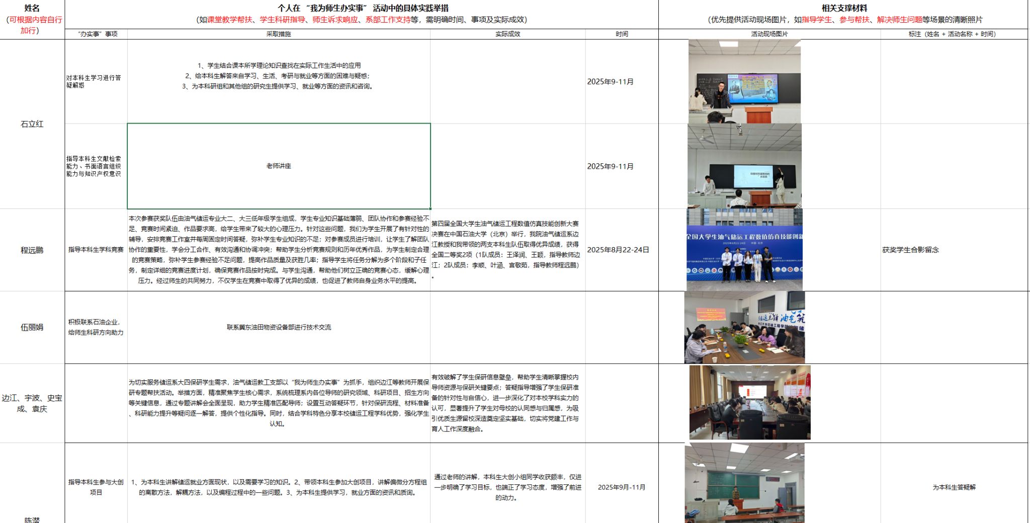 下一步,油气储运教工党支部将继续深化“我为师生办实事”实践活动,将该活动打造为亮点品牌,不断优化服务举措,充分发挥党支部战斗堡垒作用和党员先锋模范作用,为培养更多优秀油气储运专业人才贡献力量。