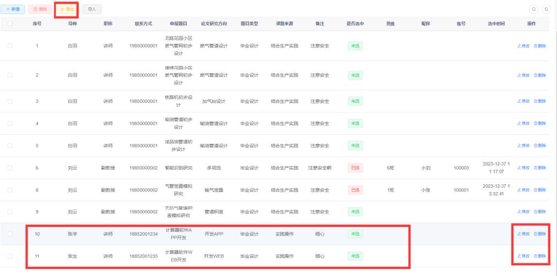 本科毕设选题系统。该系统覆盖油气储运、石油工程等4个专业,可满足每年500余名本科生的毕业设计选题需求,充分考虑了不同专业的毕业设计特色与需求。