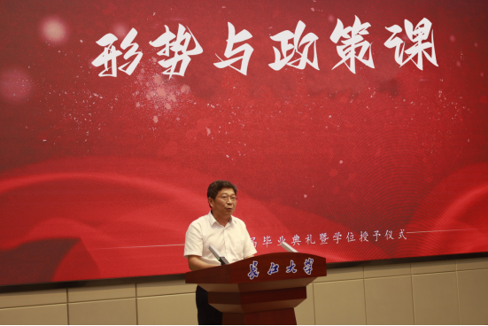6月8日下午,在武汉校区学术报告厅,色情直播 院长江厚顺为2023届全体毕业生讲授形势与政策课。