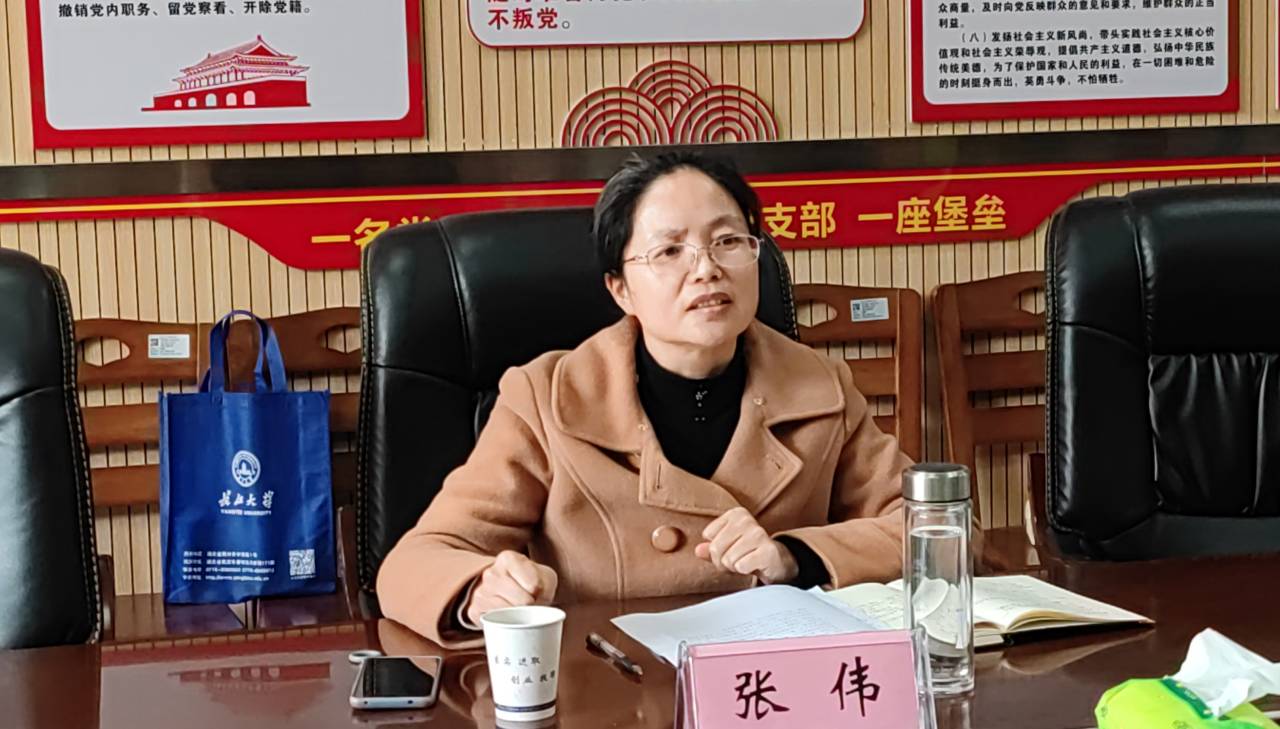 张伟围绕学院党建“双创”工作重点任务,聚焦“五个到位”,详细汇报了学院党建工作。她表示,近年来学院事业的高质量发展得益于发挥基层党组织的战斗堡垒作用,以及党员的先锋模范作用,得益于党建和业务融合互促。在党建引领下,学院师生攻坚克难,在教育、教学、科研、人才等各项工作中取得了一系列丰硕成果。