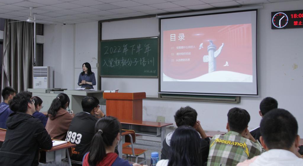 在武教A310开展了入党积极分子培训,院党委副书记刘娥讲授“青春心向党,争做‘党’中人”主题党课,85名入党积极分子参加。