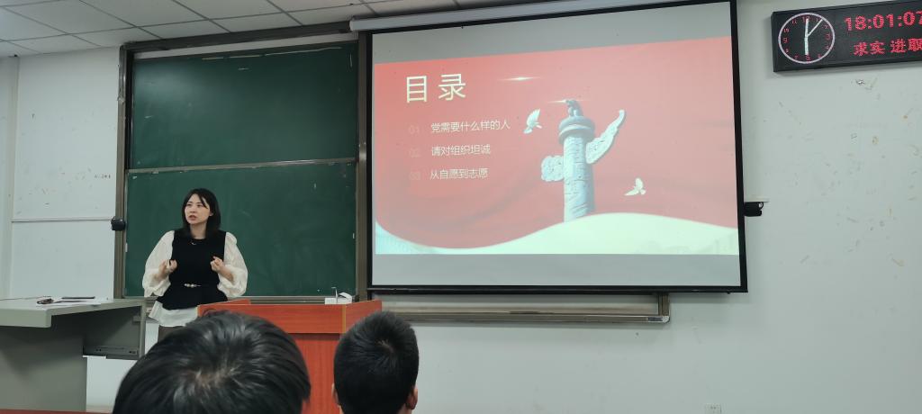 刘书记说:“了解党组织需要什么样的人是加入中国共产党的第一步。”学生们了解到在今后的学习中要认真、严谨,要牢记党的性质、党的宗旨。刘书记通过对党的基本理论、基本路线、基本纲领和基本经验等方面教育,使入党积极分子们深入了解党的性质、纲领、指导思想、宗旨、任务、组织原则和纪律,了解党员的义务和权利,了解发展党员工作的基本程序和要求,通过分享高玉宝与朱德等共产党员的故事来鼓励同学们要做到三点认同,即信仰认同、情感认同、以及意义认同。最后刘书记要求同学们能够接纳党组织对同学们的多种考核,提高理论水平,端正入党动机,坚定理想信念。