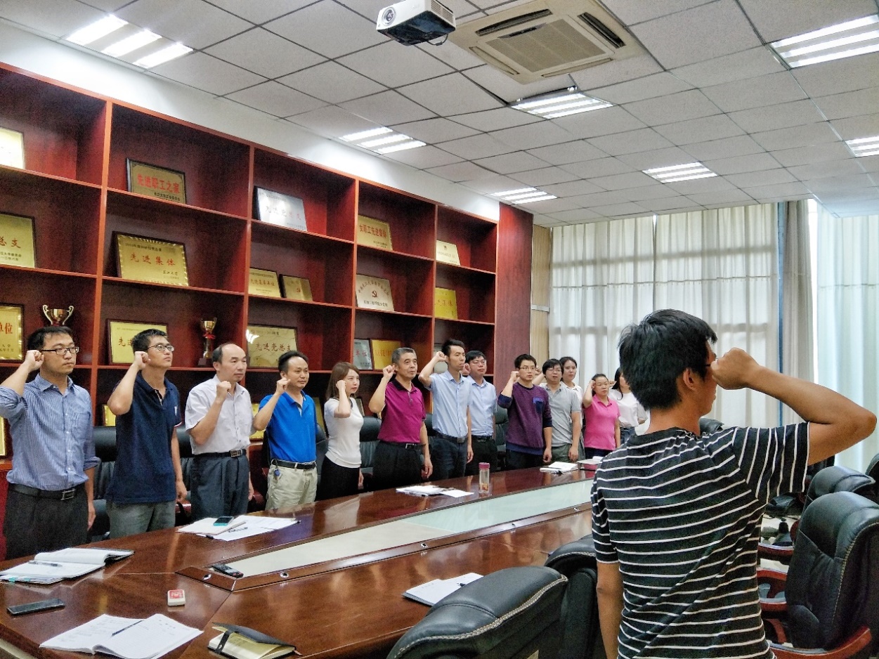 会上,全体党员面对党旗,紧握右拳,庄严重温入党誓词。张光明书记带领中心组成员认真学习了《中央宣传部负责人就〈中国共产党宣传工作条例〉答记者问》,《关于深化新时代学校思想政治理论课改革创新的若干意见》,“直面现实 负重前行”——党委书记朱业宏在中层干部培训研讨会上的讲话,“不忘初心,牢记使命,扎实推进“双一流”建设”——校长冯征在2019年暑期工作研讨会上的讲话,《色情直播
