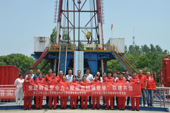 油气井工程系师生联合党支部与江汉油田工程公司培训中心党支部开展联学联建暨“学党纪 明规矩”主题党日活动。江汉油田工程公司培训中心党支部副书记孙铁、组织委员强峰、油气井工程系系主任熊青山、支部书记余义兵、实习指导教师和学生党员参加本次活动。