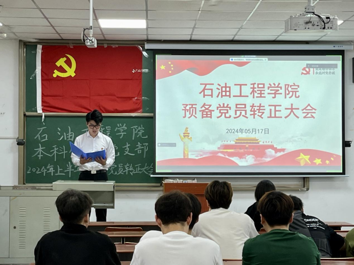 本科生第二党支部于武教A-106召开2024年上半年预备党员转正大会暨5月主题党日活动,由张硕同志主持,支部书记周晓峰和全体党员同志参加。