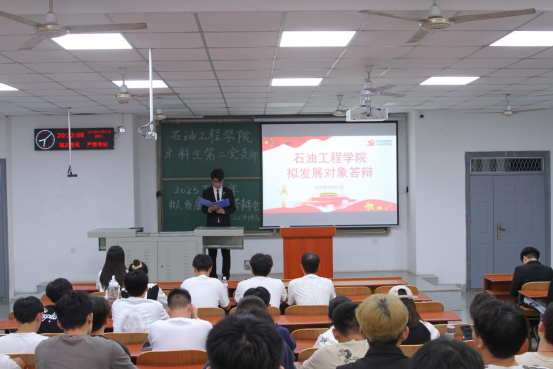 (通讯员 张硕)10月8日晚上,本科生第二党支部于武教B-104举行拟推荐党的发展对象答辩会。本次活动由张硕同志主持,27名党员,22级、23级入党积极分子参加,辅导员周雨薇、陈金建、韩清越参加并担任评委。