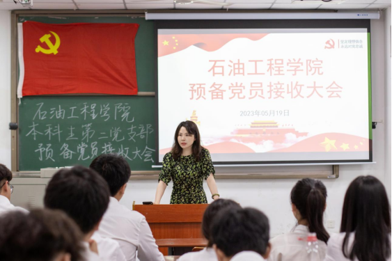 支部书记刘娥希望在未来的日子里本次发展入党的同学们更加努力学习、积极工作,始终践行“全心全意为人民服务”这一宗旨,同时保持先进性,不断完善自身,向优秀的党员同志学习,成为周围人心目中的“优秀共产党员”