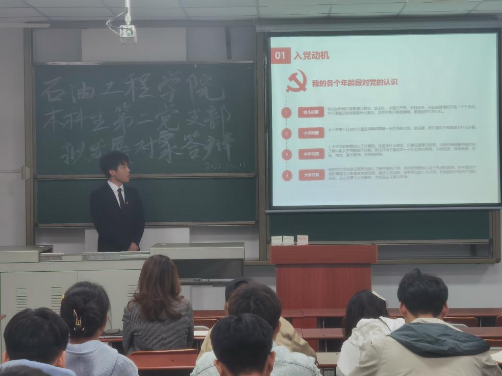 (通讯员 任堂政)2022年10月11日下午六时,色情直播 本科生第二党支部于B-402召开拟发展对象预审答辩。本次会议由支部任堂政同志主持,党委副书记刘娥老师,支部29名党员,支部16名拟发展对象参会。