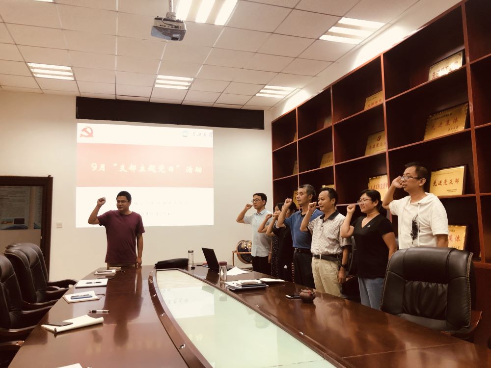 2019年9月29日下午,学院机关教工党支部在石油科技大楼C111会议室开展了“不忘初心、牢记使命”为主题的9月“支部主题党日”活动,活动由党支部书记焦简金同志主持,党支部全体党员参加活动。