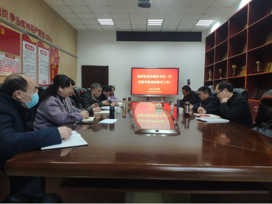 监察专员刘靖君、校纪委副书记陈平中、案件审理室主任张浩一行三人来我院调研督导清廉长大建设工作推进情况,听取学院对学校工作、纪检工作的建议。学院领导班子参加调研座谈。