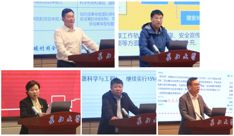 学院领导班子分别就分管工作进行部署安排。常务副院长李忠慧就发展性指标、研究生招生、全国重点实验室等重点工作进行部署,具体介绍了各项工作目标、具体举措和推进计划。副院长张顶学汇报了课程目标达成情况、专业监测评估、本科毕业设计、实习教学、“本硕博贯通培养拔尖创新人才计划”选拔、本科教学实验室建设、专业与课程建设等工作具体安排,副院长郑双进介绍了科研服务、平台建设和校友工作的工作进展和计划,副院长范梅英就财务、实验室空间建设等内容进行工作汇报,副书记张昊介绍了学工团队、安全管理、学风建设、学科竞赛、学生就业等工作情况和部署安排。