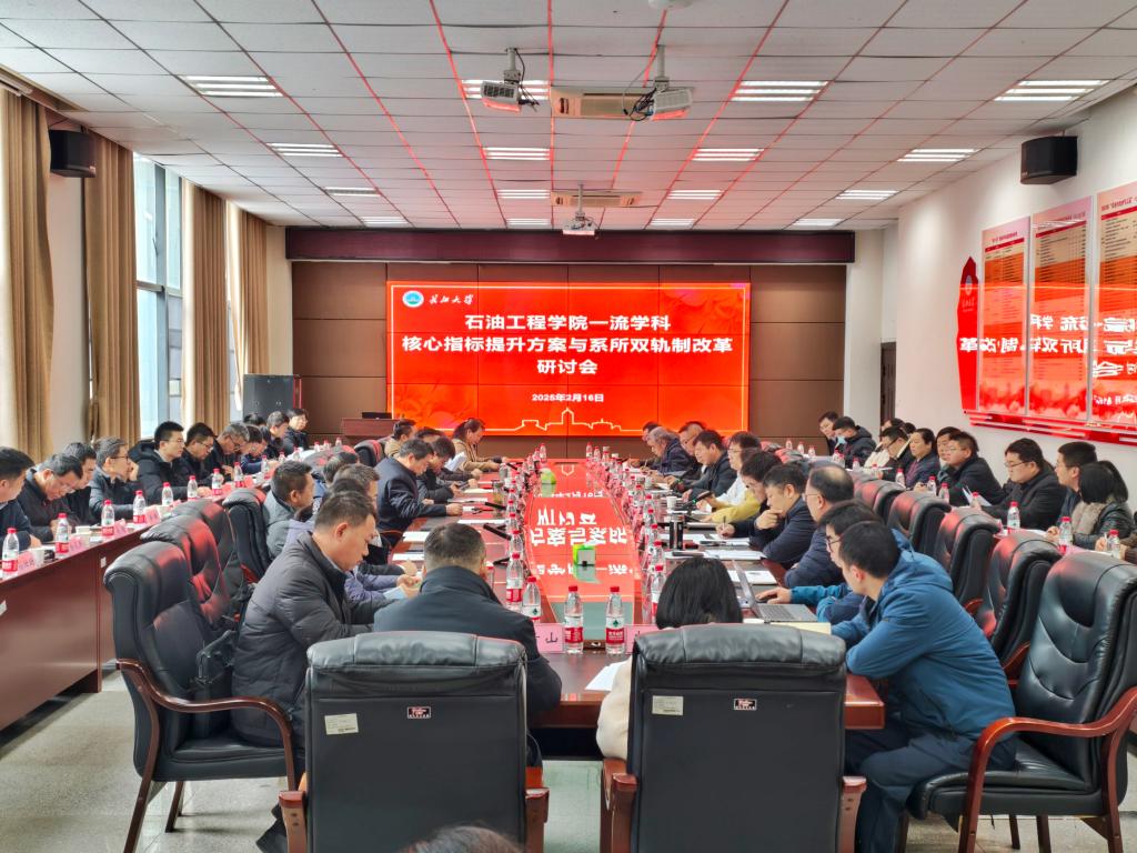 2月16日上午,我院在石油科技大楼B113召开一流学科核心指标提升与系所双轨制改革研讨会,全面剖析石油与天然气工程学科建设核心指标进展情况,锚定学院高质量发展目标,凝心聚力,共谋举措。校党委常委、副校长江厚顺出席会议。