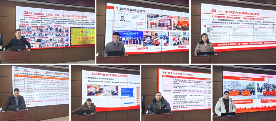 全国党建工作样板支部、油气田开发工程系教工党支部书记许文俊介绍了支部围绕一流学科建设,推动党建业务双融互促、创新探索的方式方法,以及党员教师在指导学科竞赛和三全育人方面取得成效。机关教工党支部书记杨小玉汇报了支部标准化规范化建设和实施“党员示范岗”评选创建品牌活动的实效。油气储运工程系教工党支部书记边江介绍了支部“我为师生办实事”特色活动,并重点展示了党建引领系部业务工作方面的亮点和成果。会上,学院6个教工党支部和学生党支部围绕落实上级党组织部署要求、支部标准化规范化建设、“七个有力”建设、党员队伍建设等方面情况逐一述职,并提出2025年工作思路和计划。