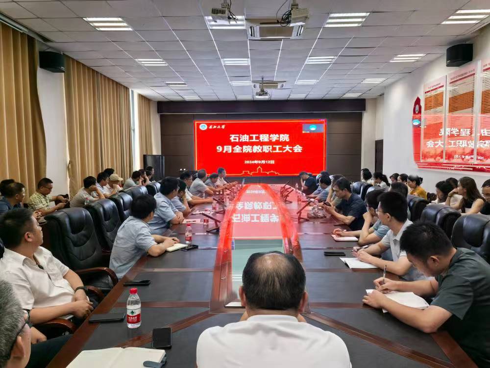 在石油科技大楼B113会议室召开全院教职工大会,部署新学期工作,推进学院高质量发展。院长宇波主持,全体教职工参加。