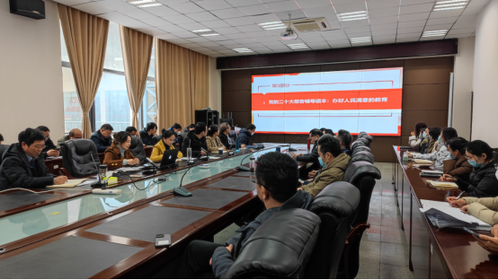 大会第二阶段为教职工2月份政治理论学习,由党委副书记刘娥领学。通过学习“党的二十大精神”,“习近平新时代中国特色社会主义思想”等材料,她表示作为高等教育工作者,全体教职工一定要坚守为党育人,为国育才,落实好立德树人根本任务,积极响应“以一流的党建,推动建设一流的学科”号召,为学院事业发展不断做出新的贡献。