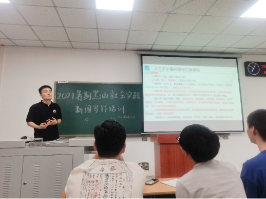 “黑油”实践队开展暑期三下乡社会实践培训大会。会议由黑油实践队带队老师沈伟正老师主持,史永波老师及全体队员参加会议。