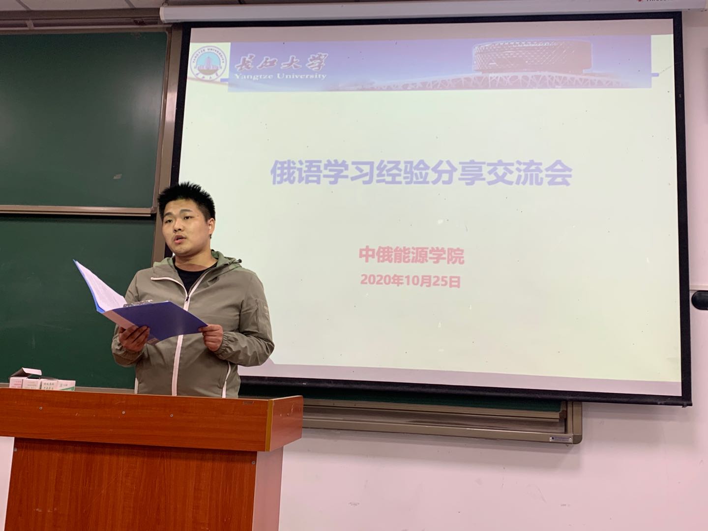10月25日晚,我院在武教A106举行了“俄语学习经验分享交流会”。中俄能源学院科长喻选梅老师、文丽晨老师、俄语教师王翌婵博士、中俄试点班18级学生黄盟、金铭、刘玉龙、魏江飞及中俄试点班19级全体同学参加了此次交流会。会议由中俄能源学院文丽晨老师主持。