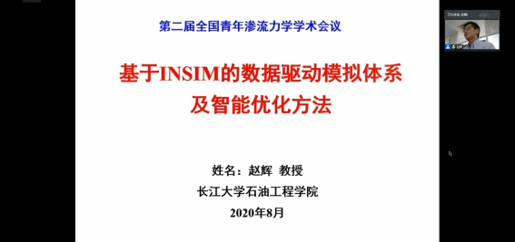 8月31日-9月4日,国际多孔介质协会(International Society for Porous Media)第12届全球年会(Interpore 2020)在线上举办。该会议国际多孔介质协会主办,中国石油大学(华东)承办。我院赵辉教授受邀参加会议并担任大会分会场主持人。会上,赵辉教授发表题为“A Physics-based Data-driven Model for Waterflooding Profile Control and Water Plugging Performance”的大会报告,引发与会专家的热烈讨论与好评。近年来,赵辉教授团队的研究成果在智能油气藏领域的影响日益深入,受到了国际同行的高度关注与认可。本届大会上,挪威SINTEF公司Manuel Borregales等人的大会报告中将其创立的数据驱动模拟模型(INSIM)引入到目前世界石油领域著名的开源油藏数值模拟仿真软件MATLAB Reservoir Simulation Toolbox(MRST)中,该软件被国内外广大石油高校和石油公司广泛采用,用于教学、科研和快速原型开发研究。
