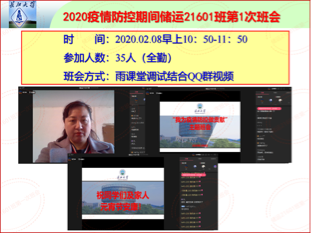 所有班级在班主任和辅导员老师的带领下,于2月8日完成“我为疫情防控做贡献”主题班会,通过线上渠道向所有学生传达疫情预防措施和防控要求,引导学生积极应对疫情,做好个人防护。