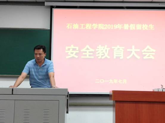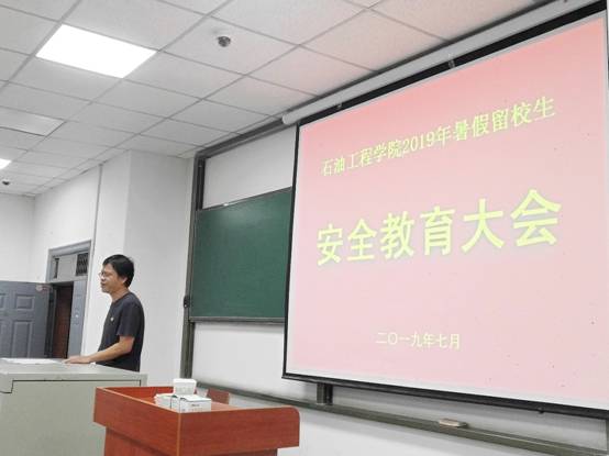 在武教B-103教室召开了2019年暑期留校学生安全教育大会,院党委副书记王辉、学工办梁军老师、史永波老师、郭冀宁老师,及我院留校生参加了本次会议。