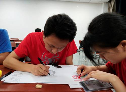 周五晚自习,团支书带来集体订购的绘画材料分发给八个组的同学们,同学们拿到彩笔后跃跃欲试,很快大家就进入了创作状态。在讨论构思时,大家各抒己见,并为好的想法欢呼鼓掌;每个组分工明确,有负责找资料的、有负责画画的、有负责写字的;当一个人在画画或写字时,其他人都目不转睛地期待着成果……大家都在为自己的作品努力,这正是青年该有的样子。