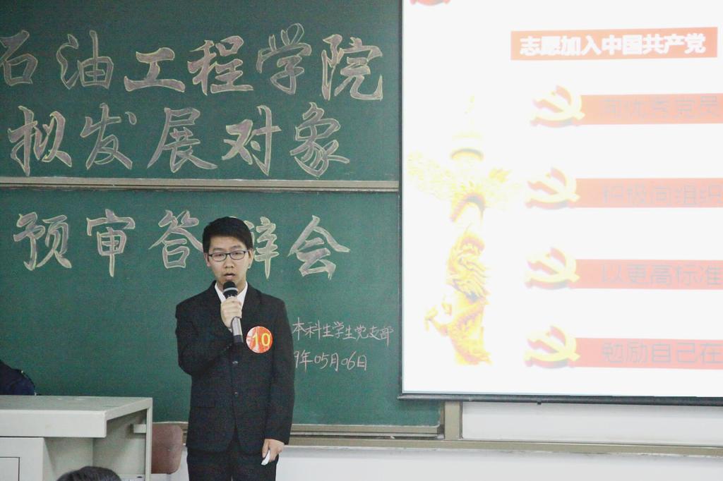 各个社团组织以及各类活动的引领者,带领同学们积极进取,奉献自己。在答辩的自我陈述部分,大家结合自身实际情况,具体深入地谈到了对党的认识、入党动机和自身的现实表现。在党识党情考察环节,每位答辩者都要从准备的题目中抽取一题作答。这些题目涉及到中国共产党的宗旨、党的性质、党在社会主义初级阶段的基本路线、党员的权利与义务、我国现阶段的基本矛盾等,大部分答辩者经过长期思想政治理论学习和熏陶都能流利作答。