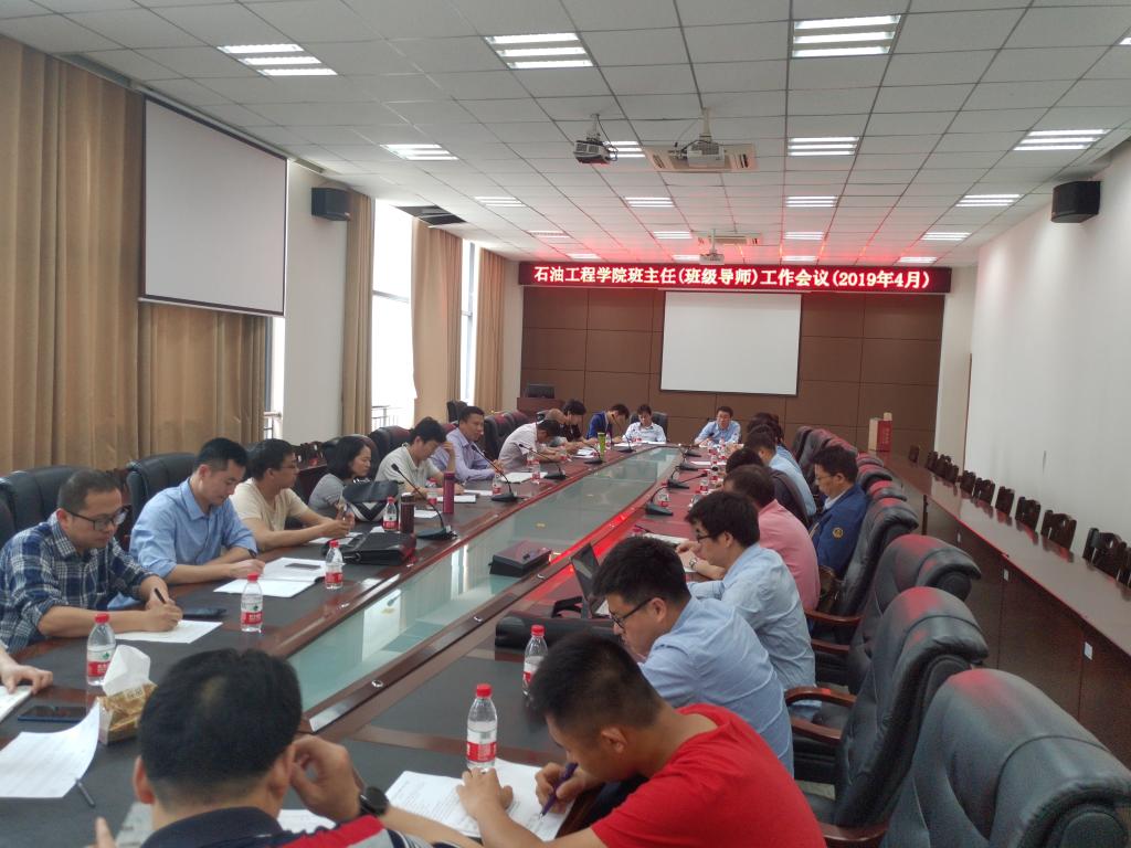 4月25日下午2:30 ,我院在石油科技大楼B113会议室召开全院班主任(班级导师)4月份工作会议,党委副书记王辉主持会议。