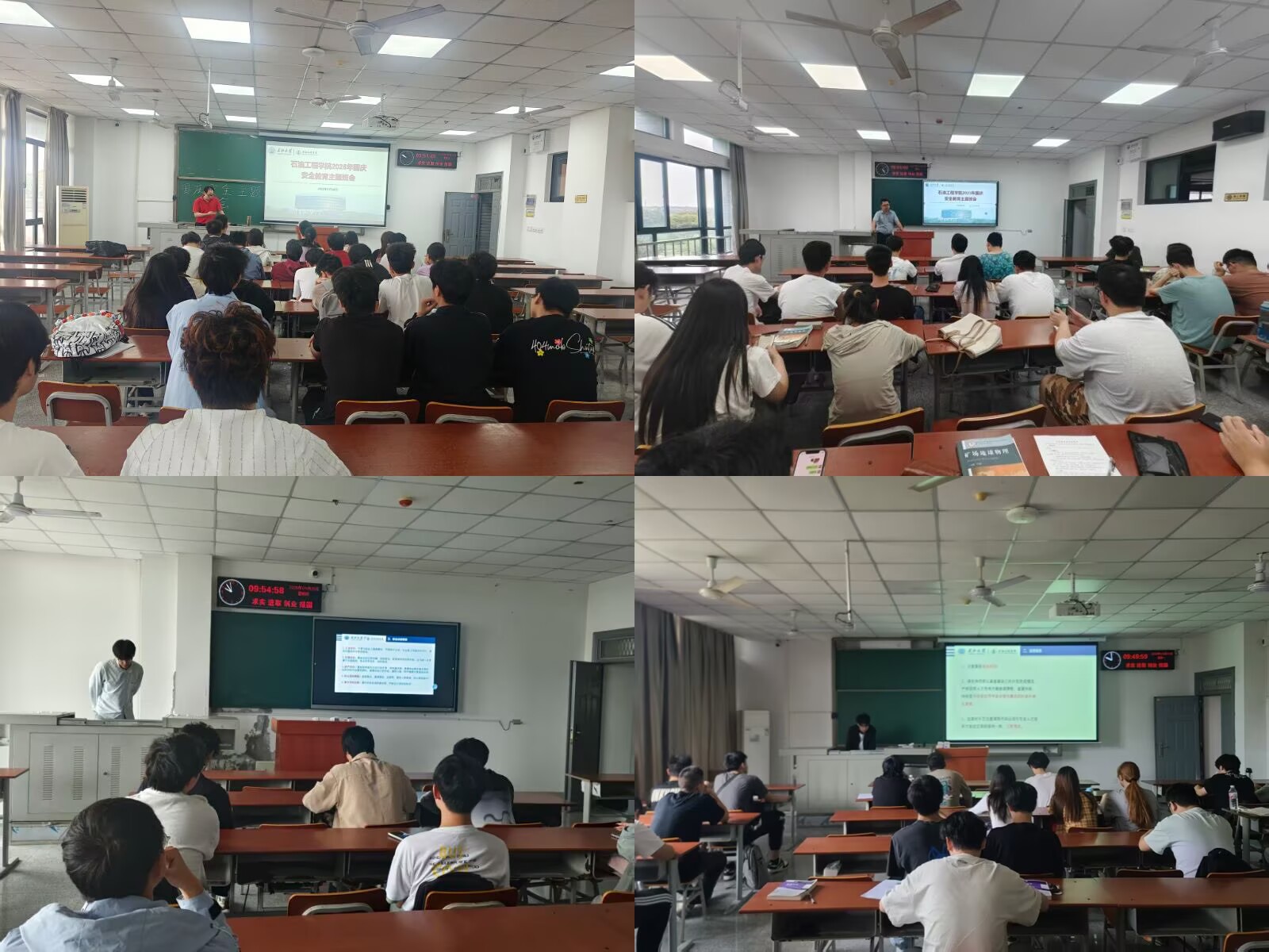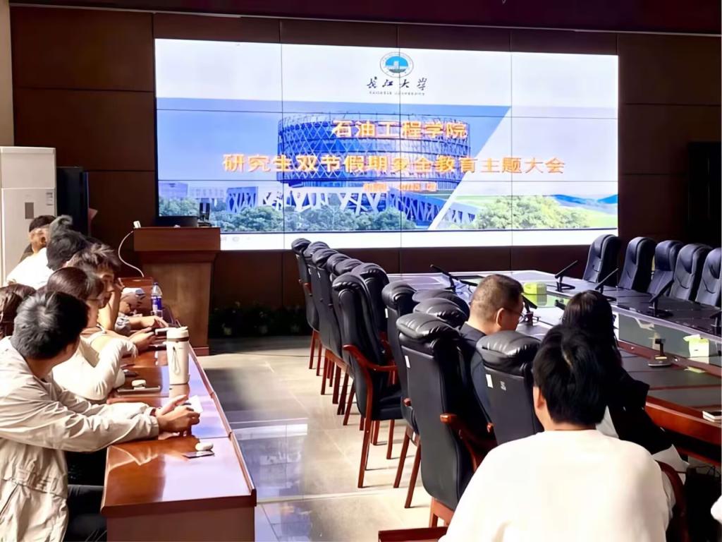 组织研究生于石油科技大楼B113召开研究生双节假期安全教育主题大会,同时,我院也组织本科生各班级开展了国庆假期前安全教育主题班会,本次安全班会旨在应对假期前后校园及社会层面的安全风险,筑牢校园安全防线。