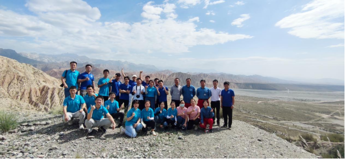 图为行程结束后实践队员与塔里木石油人合照。通讯员 陈金建 摄